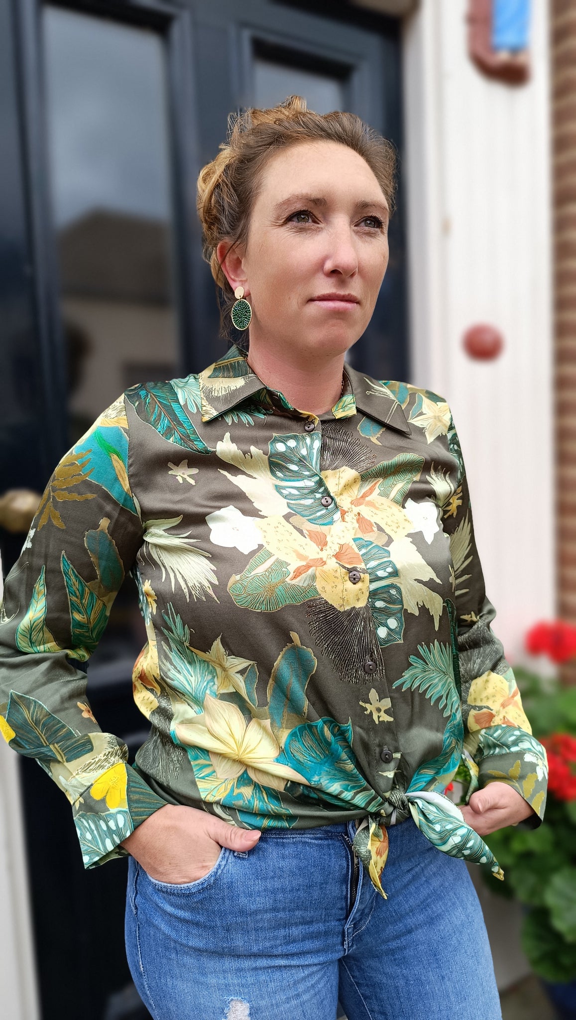 Wauw wat een prachtige blouse in groen tinten, goed te combineren met alle onderstukken 100...