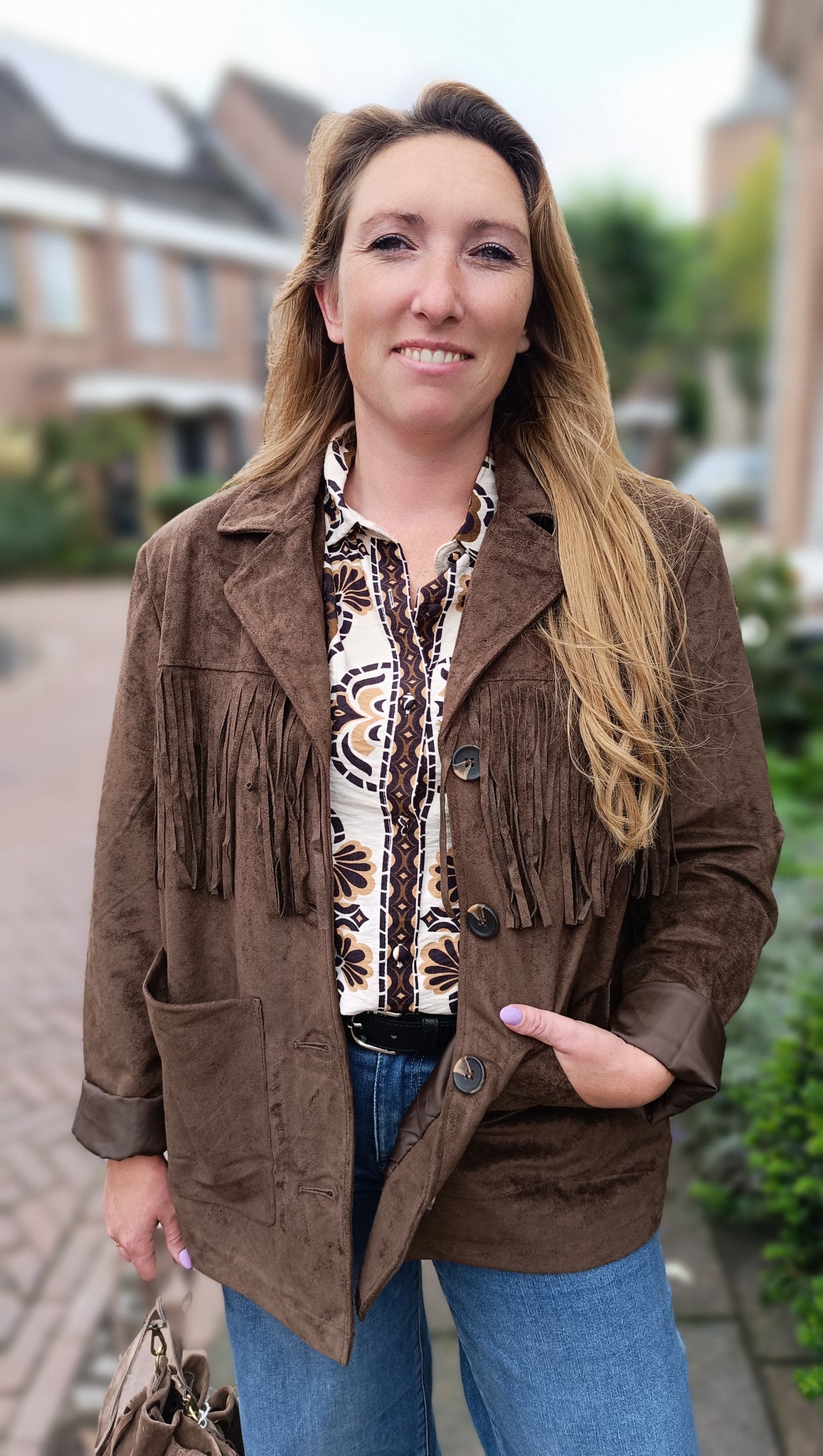 Mooi uitgewerkt jasje wat ook gevoerd is met zakken voorop gestikt. De franje maakt het...