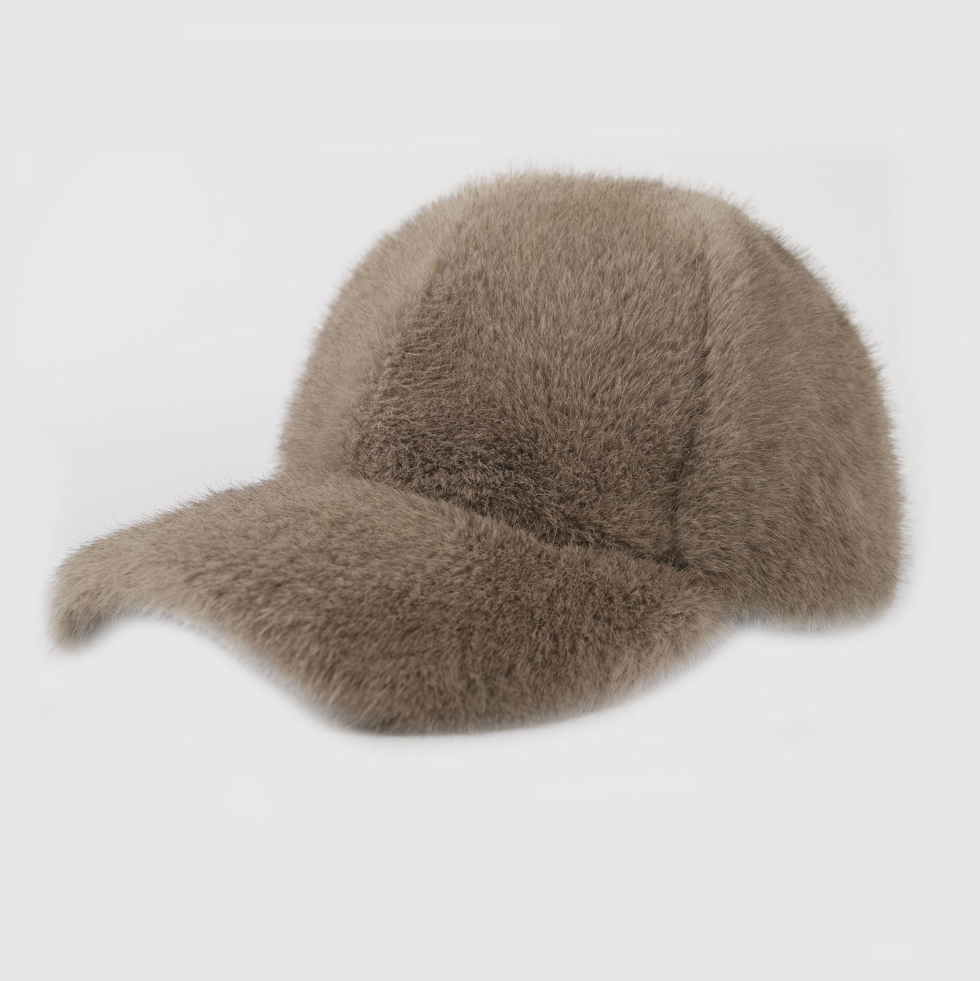 Taupe kleurige faux fur pet. Is verstelbaar aan de achterkant