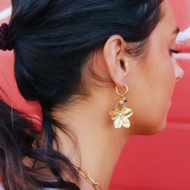 Kleine creool met bloemhanger en kraaltjes stainless steel
