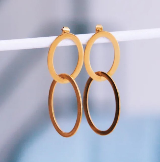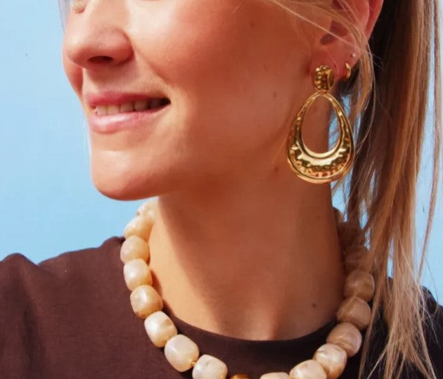 Statement oorbellen met bewerkte druppel Stainless steel. 6 cm.