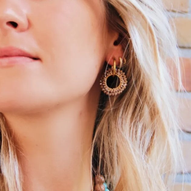 Stainless steel kleine creolen met smiley hangers. 6 cm.