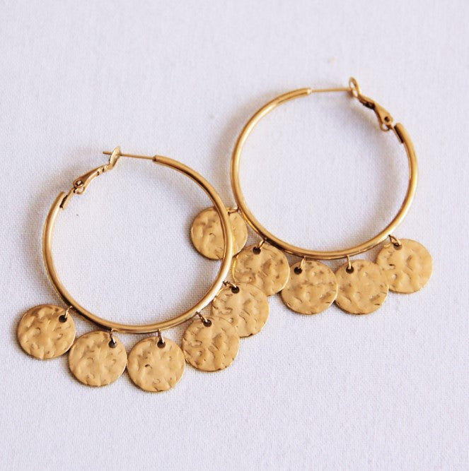 Oorbellen met muntjes hanger stainless steel 5 cm