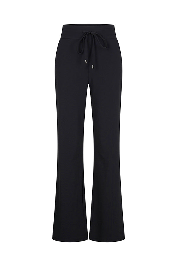 Mi Piace Travel Broek Tape in het zwart heeft een vrouwelijke flared pasvorm met sportieve...